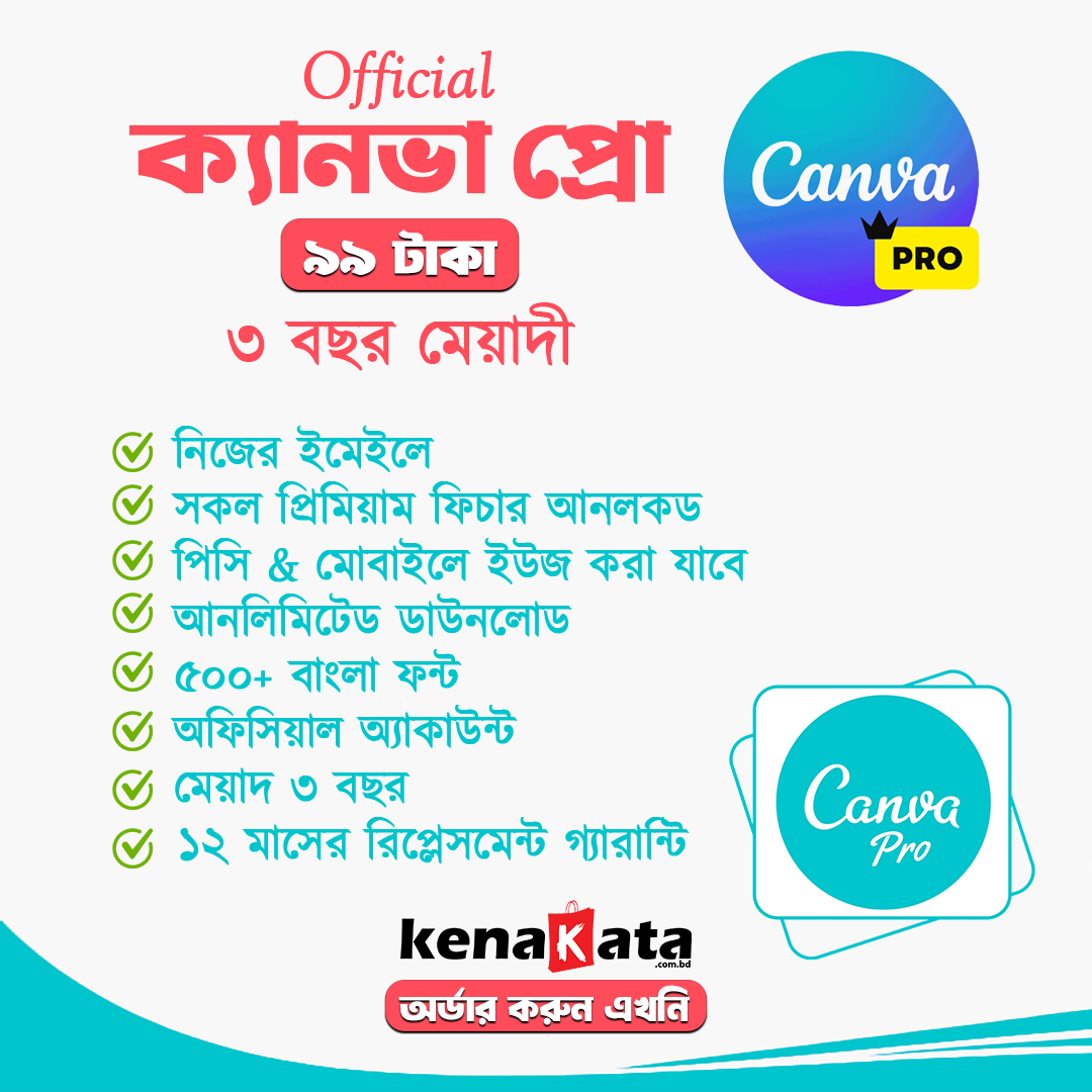 Are you looking to buy Canva Pro Account  in Bangladesh ? Then Kenakata.com.bd is the best online shopping mall to buy Canva Pro Account all over Bangladesh with Cash on Delivery. We offer online shopping in Bangladesh for authentic products, exceptional customer support, hassle-free returns, and fast deliveries. Our customers return to our Online Shopping BD because we provide after-sale service.